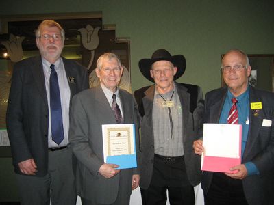 From left - Secretary Mitch Goodjohn, VE6SM, Gordon Hungerford, VE6TI, President Ken Oelke, VE6AFO