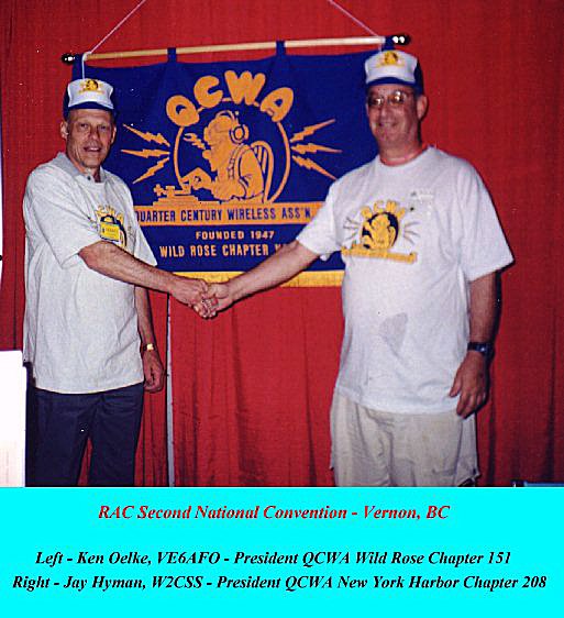 We attended Radio Amateurs of Canada 2nd National Convention held in Vernon, BC July 26-29, 2002. Many visited our booth, including Jay Hyman, W2CSS President of the New York Harbor Chapter 208.