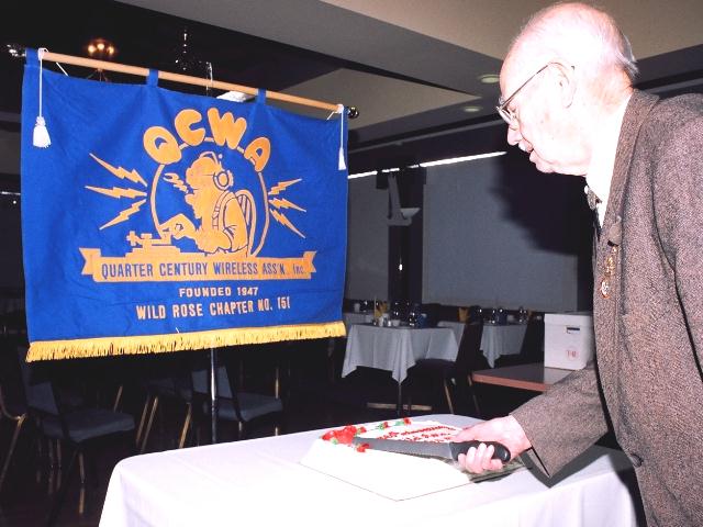 We had a good attendance at our Annual General Meeting. The weather was perfect and the meal was excellent! We celebrated the Chapter's 20th anniversary with a ceremonial cake cutting affair. QCWA Life Member and past president Les Card, VE6CA did the honours.