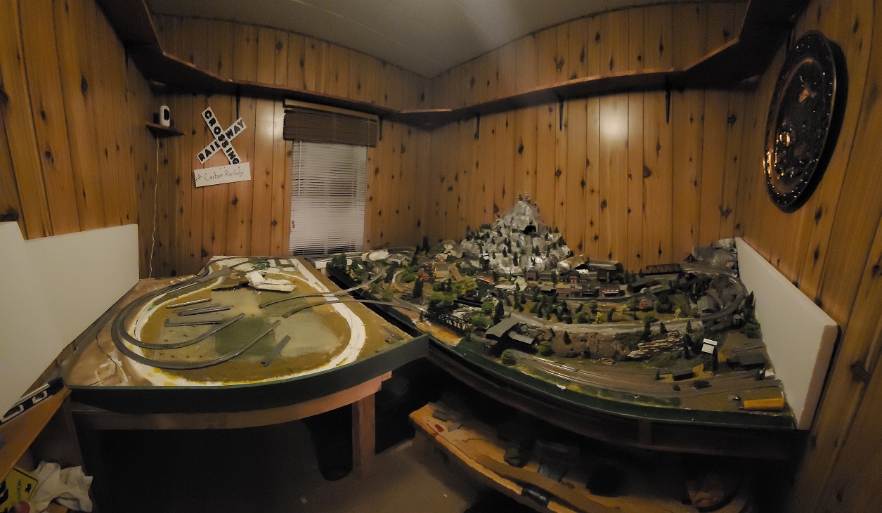 In the Middle we have our main attraction, which is an N scale layout of approximately 100 sq foot of scenery with 2 separate complete loops.