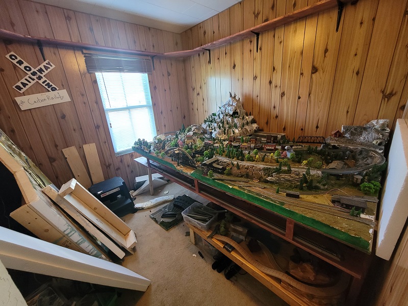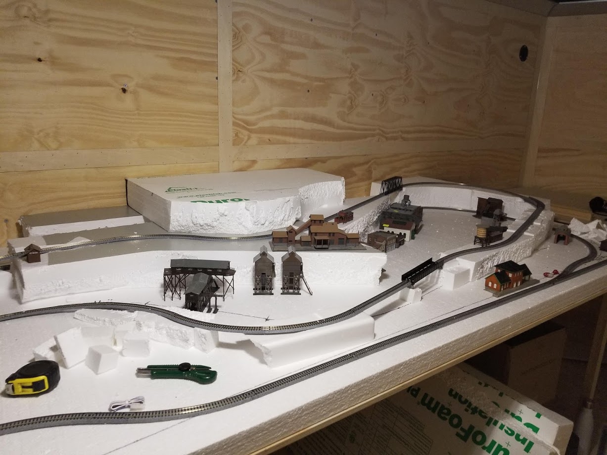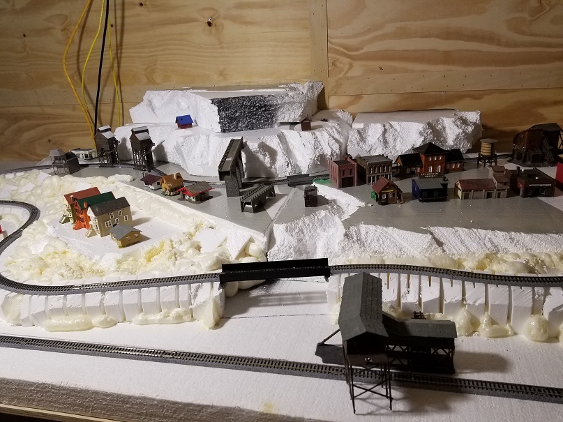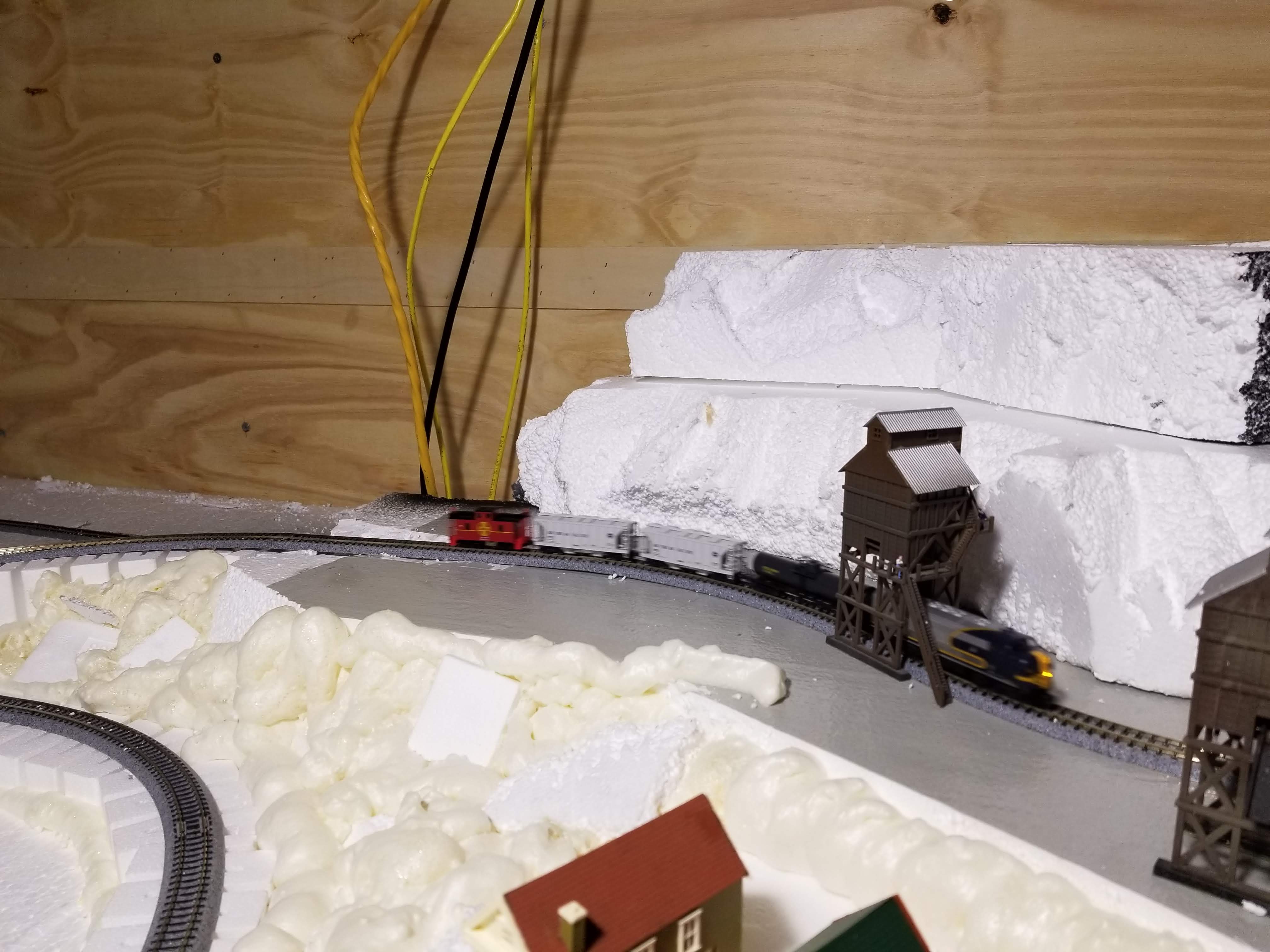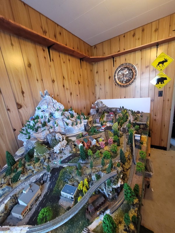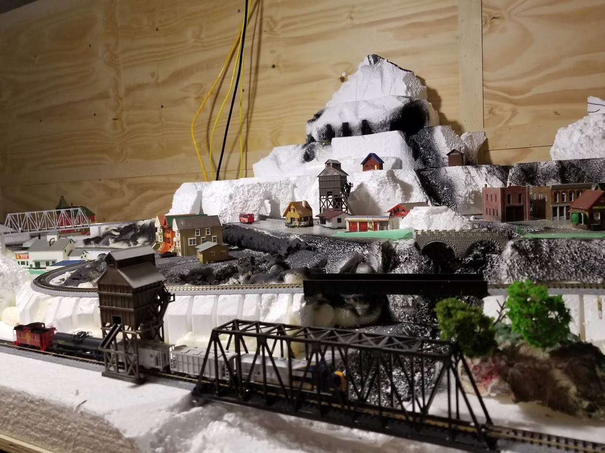 In the Middle we have our main attraction, which is an N scale layout of approximately 100 sq foot of scenery with 2 separate complete loops.