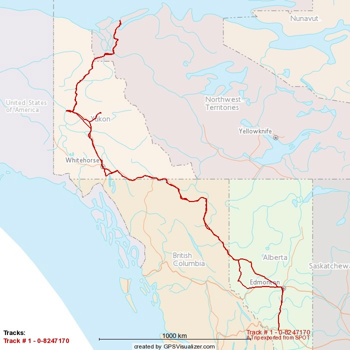 from to distance 1) calgary/carbon Dawson creek 800km 2) dawson creek liard 750km 3) time day 4) liard whitehorse 650km 5) whitehorse dawson city 550km 6) time day 7) dawson city eagle plains 400km* 8) eagle plains inuvik 366km* 9) inuvik Tuktoyaktuk 150km* 10) time day 12) Tuktoyaktuk Tsiigehtchic 300km* 13) Tsiigehtchic eagle plains 250km* 14) eagle plains dawson city 400km* 15) time day 16) dawson city whitehorse 550km 17) whitehorse watson lake 450km 18) time day 19) watson lake fort nelson 500km 20) fort nelson grand cache 770km 21) grand cache calgary 700km